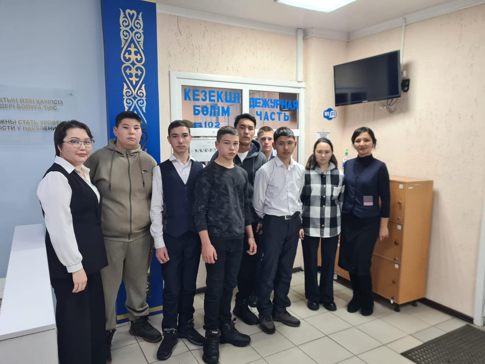 15 қараша күні кәсіби бағдар беруші педагогтері жоспарға сәйкес 9-11 сынып оқушыларын аудандық ішкі істер бөліміне саяхат ұйымдастырды. Оқушылармен әңгіме жүргізілді, оқу орындарына түсуі жөнінде мәлімет берілді.