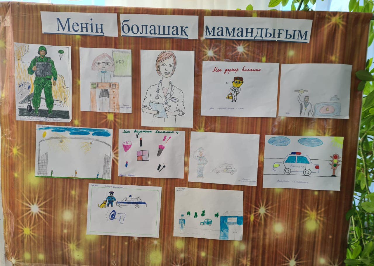 Мектебіміздің кәсіби бағдар беруші мамандары 2-4 сынып оқушылары арасында "Менің болашақ мамандығым" тақырыбына суреттер байқауын ұйымдастырды. Оқушылар өздерінің жақсы көретін мамандықтарымен таныстырды.