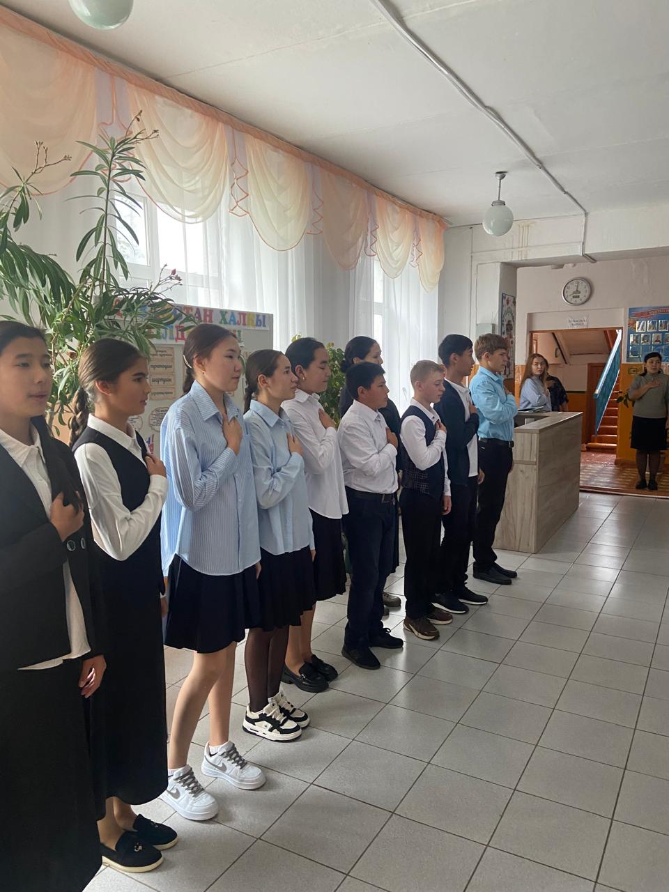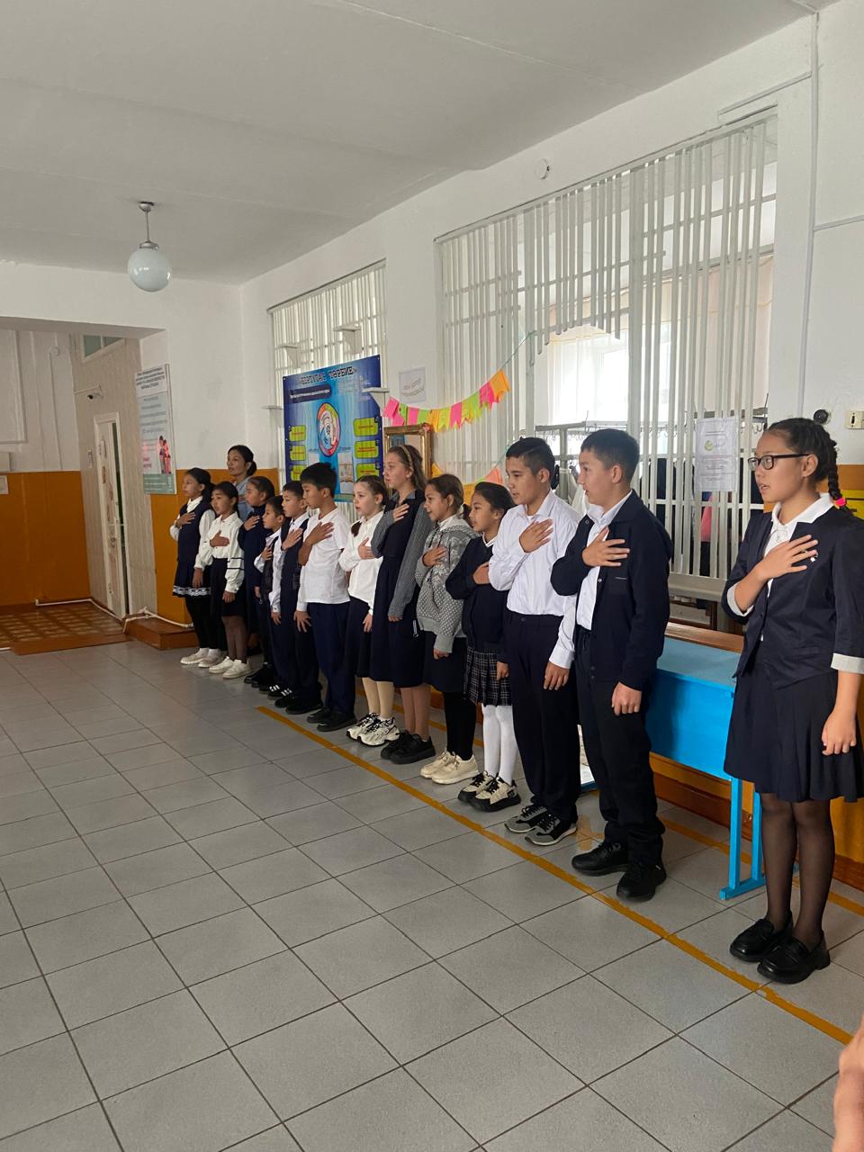 Бұл салтанатты сәт жаңа оқу аптасының басталғаның білдіреді әрі оқушыларға Отанға деген сүйіспеншілік пен ел рәміздеріне деген құрметтің маңызын еске салады.