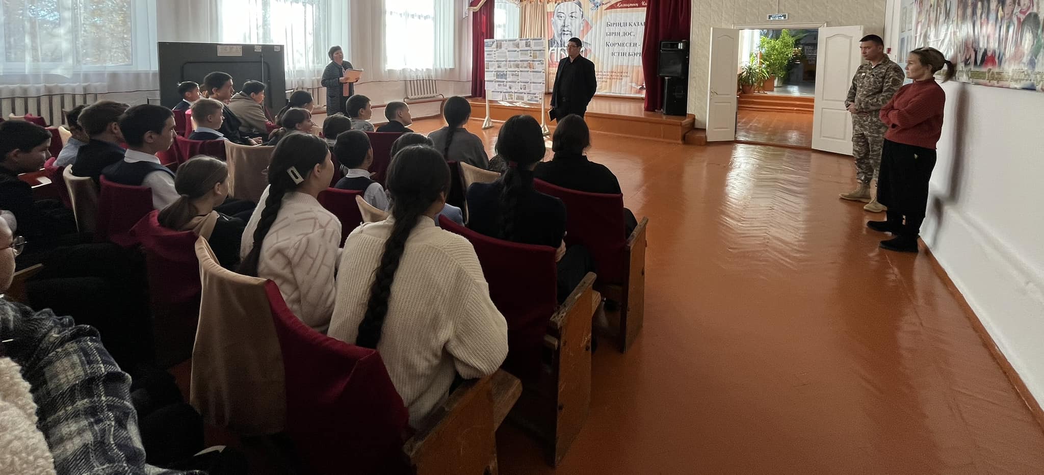 Мектебімізде халық қаһарманы Рахымжан Қошқарбаевтың туғанына 100 жыл толуына орай 5-11 сынып оқушыларына "Рейхстагқа тігілген ту" тақырыбында сынып сағаты өтті. Мектеп кітапханашы Садвокасова Д.С және тарих пәнінің мұғалімі Қабжан Ж.Ж оқушыларға батырдың ерлігі жайында мағлұматтар берді.